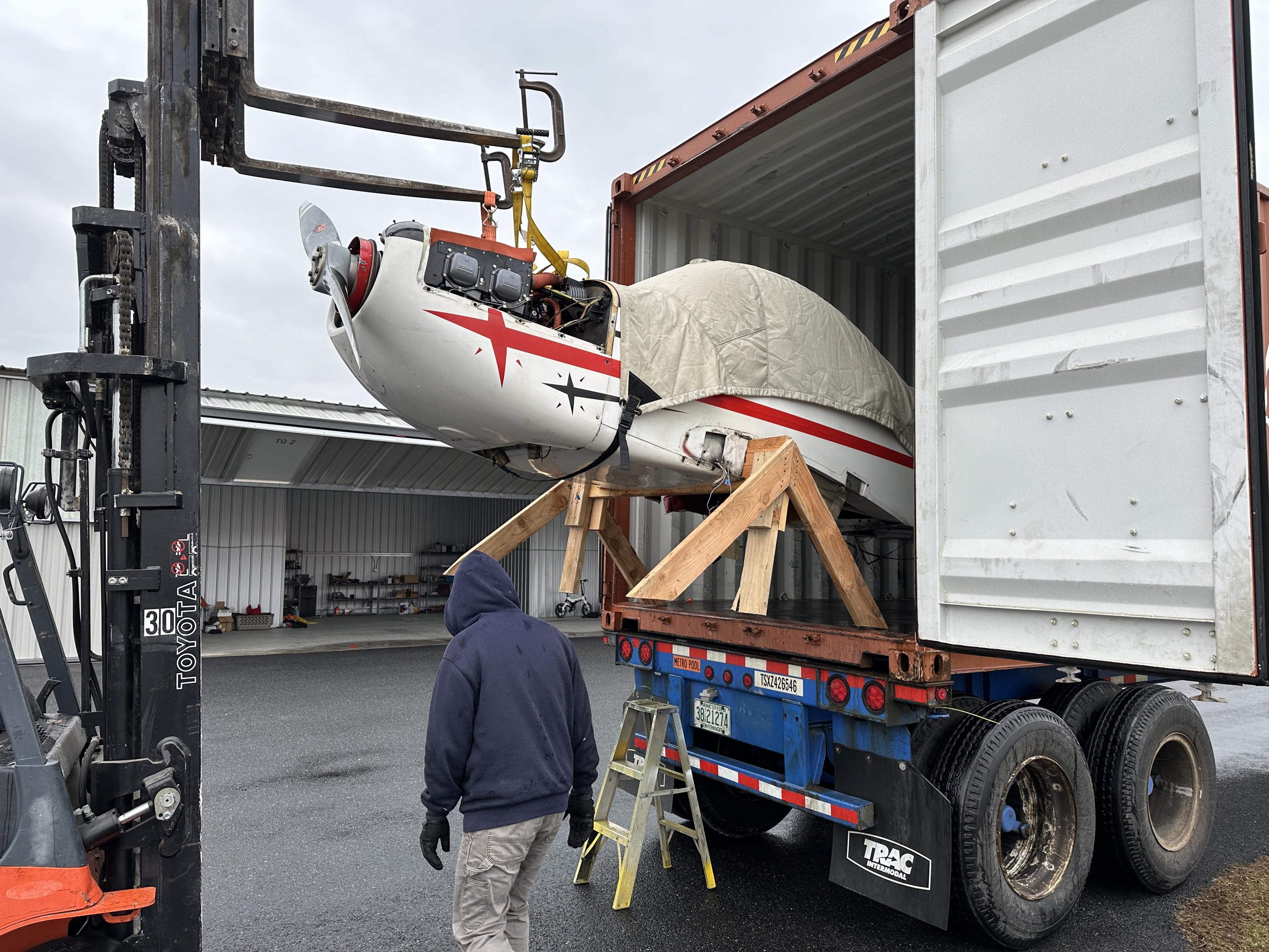 Photo of it coming out of the container. Got it all in my hangar. Now, just have to get it put together before the Mooney comes back.
